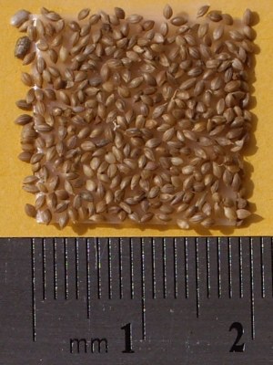 ![]() View larger image | Teff, brown - Teff seeds are smaller than fonio, and are perhaps the smallest domesticated grain. In germination tests, brown teff germinated in only 24 hours. |